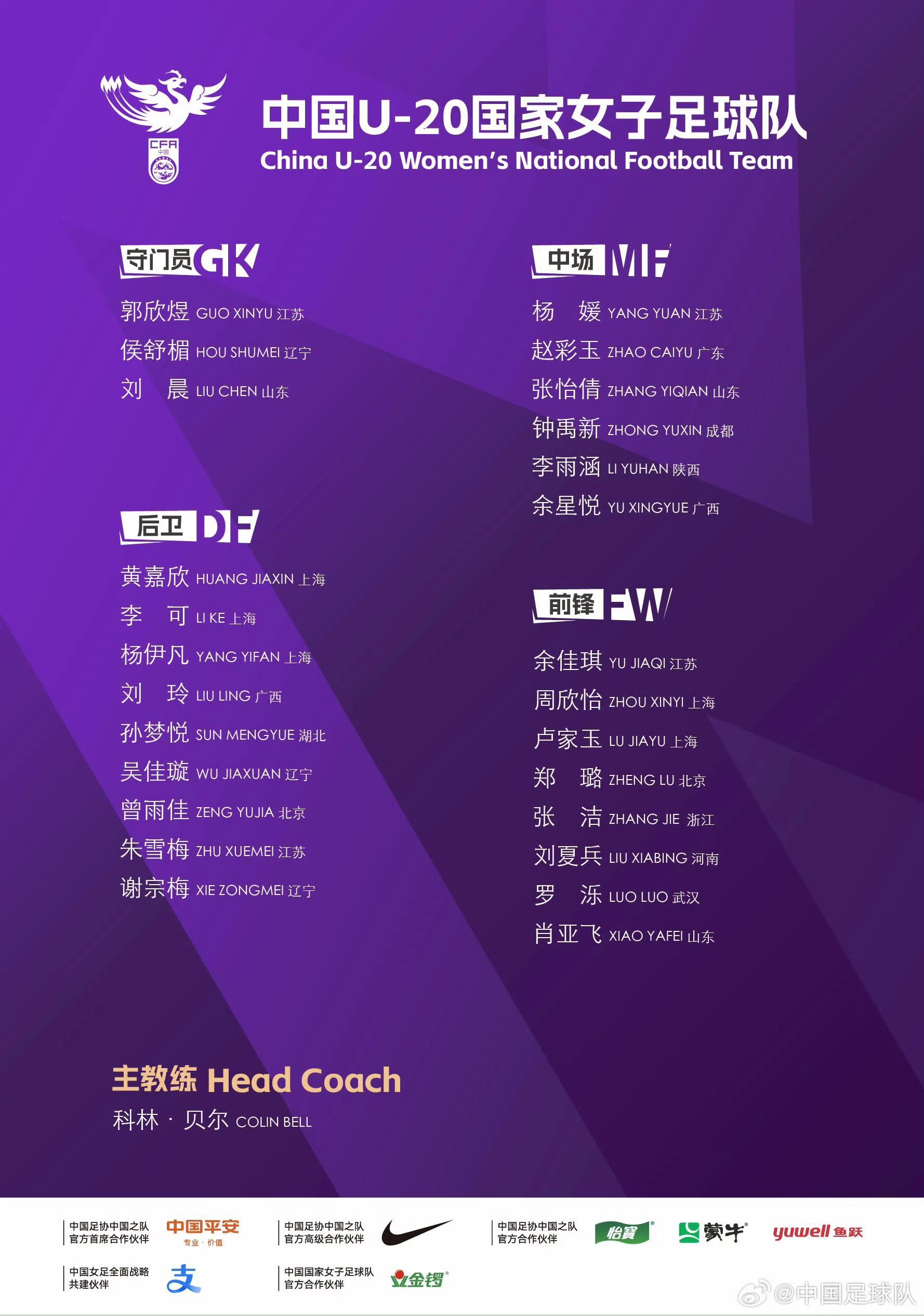 北京时间11月20日,中国U20女足赴西班牙拉练名单公布,刘晨、周欣怡在列。