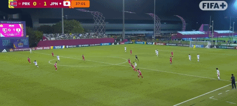第4分钟,濑口大翔传中,麦吉头球破门,U17日本1-0朝鲜U17