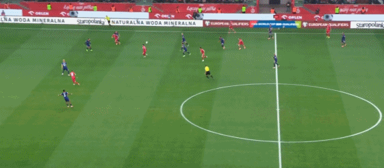第43分钟,莱万妙传,卡明斯基冷静推射破门,波兰1-0!