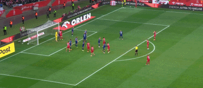 第90分钟,莱万抢点头球攻门,皮球被没收