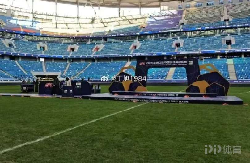 网传梭鱼湾球场布置彩排颁奖仪式 领奖台、工作人员均部署