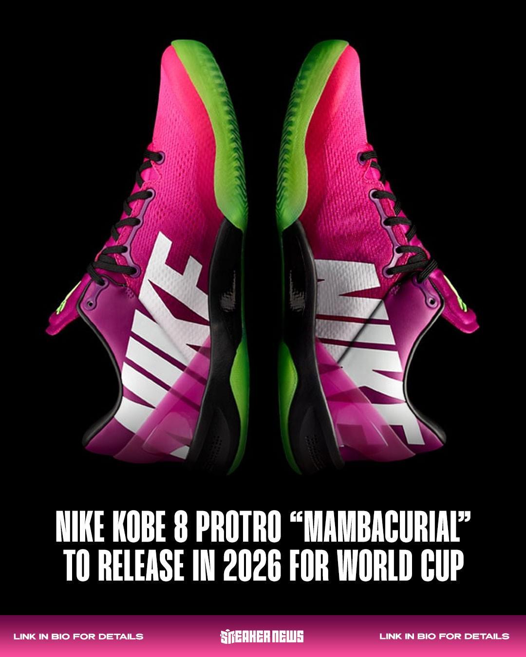 北京时间11月22日,据美媒SneakerNews报道,为庆祝2026美加墨世界杯,与刺客足球鞋融合设计的科比8代曼巴刺客(Mambacurial)配色篮球鞋将进行复刻。