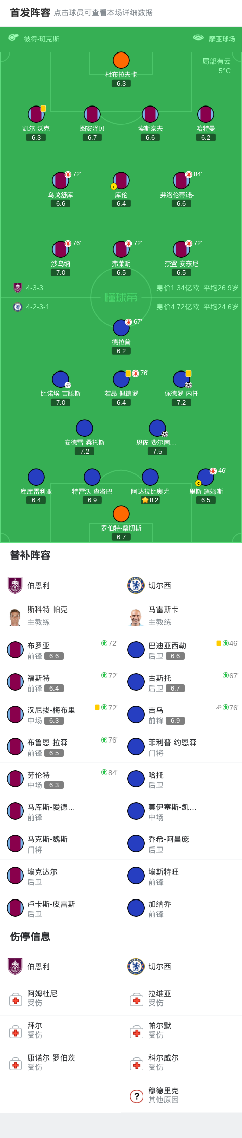 切尔西2-0客胜伯恩利,内托、恩佐破门,吉滕斯、吉乌送助攻