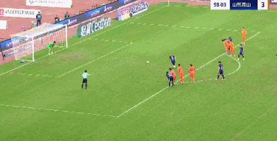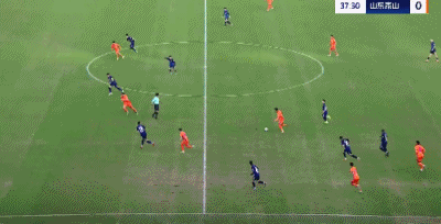 第38分钟,泽卡禁区左路低射远角破门,山东1-0三镇